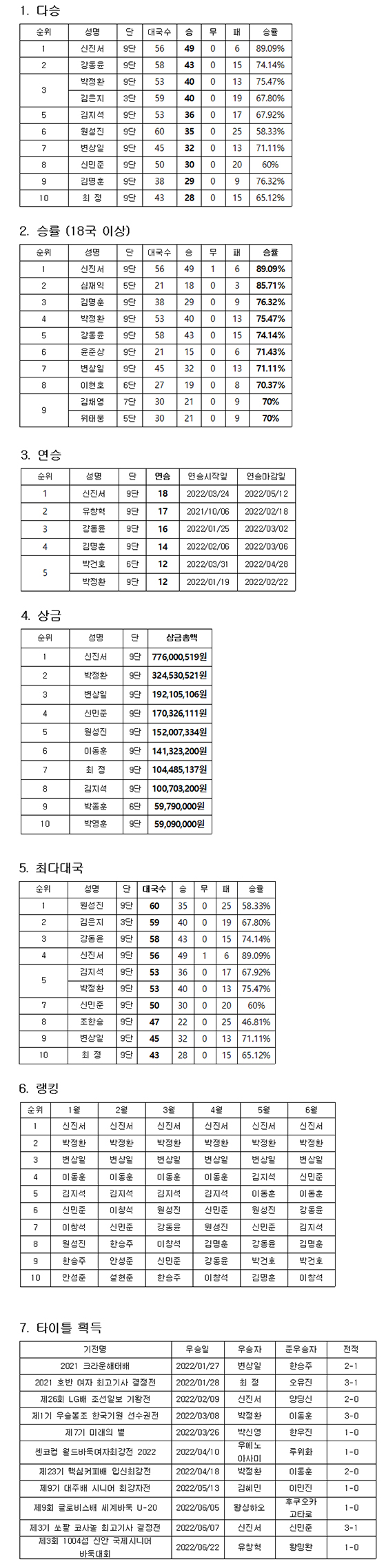 2022년 상반기 주요 기록은 다음과 같다. (※한국 프로기사협회 리그 제외).jpg)
