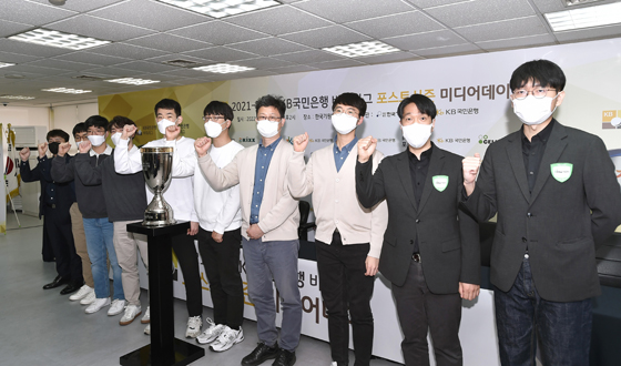 ▲2021-2022 KB국민은행 바둑리그 포스트시즌 미디어데이에 각 팀 감독과 선수들이 출전해 선전을 다짐하는 장면. [자료사진]