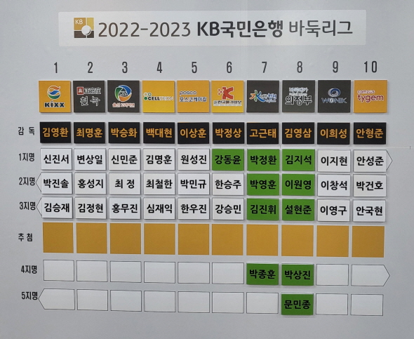 박정상 9단을 신임감독으로 내세운 한국물가정보는 강동윤 9단을 1지명으로 보호했다. 바둑메카의정부는 김지석ㆍ이원영 9단과 설현준 7단, 박상진ㆍ문민종 6단을 1∼5지명으로 전원 보호하며 일찍이 선수 구성을 마쳤다.