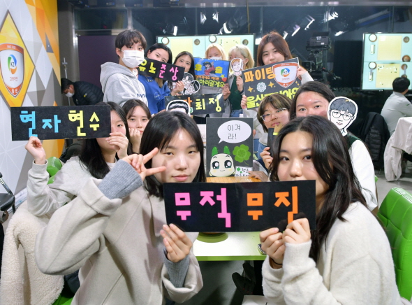 26일 이화여자대학교를 비롯해 광운대학교와 서울시립대학교, 아주대학교, 인천대학교 등 5개 대학의 서포터즈 38명이 ‘2022-2023 KB국민은행 바둑리그’ 인터리그 5라운드 셀트리온과 울산고려아연 경기 현장 응원을 위해 한국기원 바둑TV스튜디오를 찾았다.