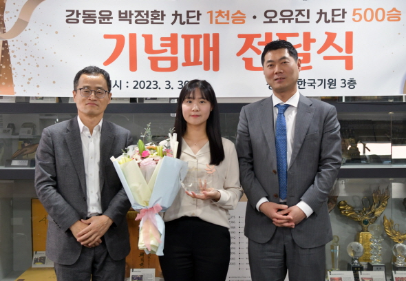 강동윤ㆍ박정환 1천승, 오유진 500승 기념패 전달식 열려