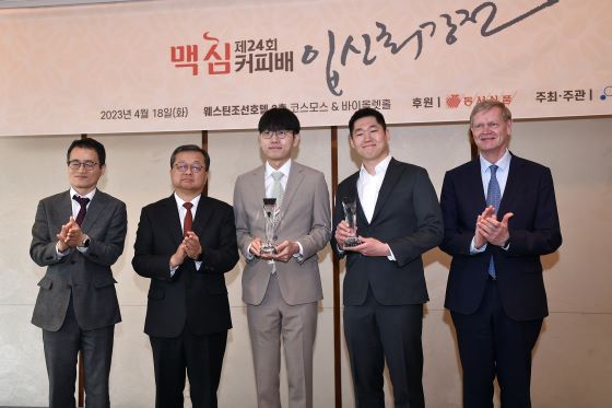 신진서 9단이 두 번째 우승을 차지한 제24기 맥심커피배 입신최강전 시상식이 18일 웨스틴조선호텔 코스모스&바이올렛 홀에서 열렸다.
