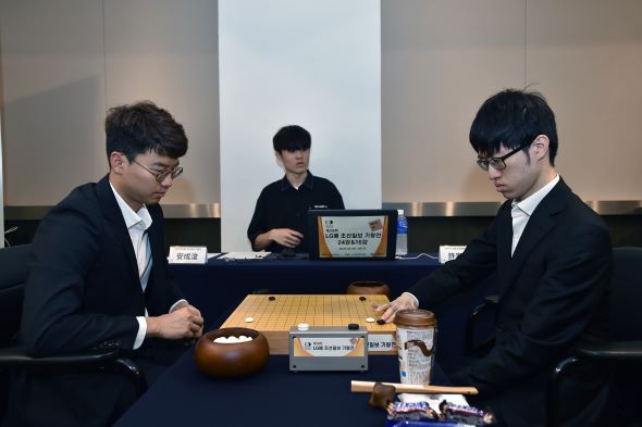 한국의 첫 승전고는 맏형 안성준 9단이 울렸다. 안성준 9단은 일본 쉬자위안 9단을 만나 치열한 중반 전투 끝에 222수 만에 백 불계승을 거뒀다. 안성준 9단은 LG배 두 번째 출전 만에 16강을 밟게 됐다.