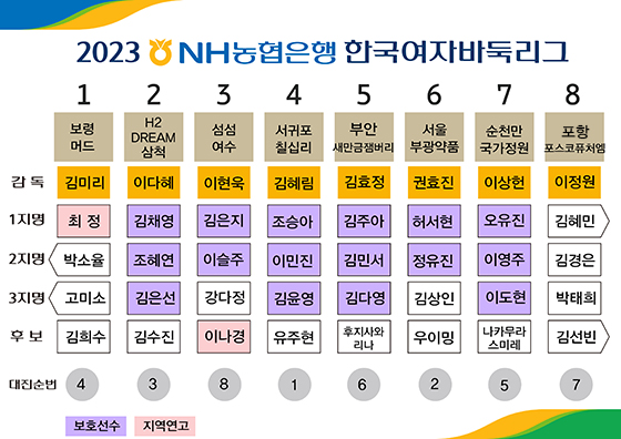 선수선발식에는 전기 우승팀 서귀포시(서귀포 칠십리ㆍ감독 김혜림)를 비롯해, 부광약품(서울 부광약품ㆍ감독 권효진), 부안군(부안 새만금잼버리ㆍ감독 김효정), 보령시(보령 머드ㆍ감독 김미리), 삼척시(H2 DREAM 삼척ㆍ감독 이다혜), 순천시(순천만국가정원ㆍ감독 이상헌), 여수시(섬섬여수ㆍ감독 이현욱), 포스코퓨처엠(포항 포스코퓨처엠ㆍ감독 이정원) 등 8개 팀 감독과 관계자들이 참석했다.