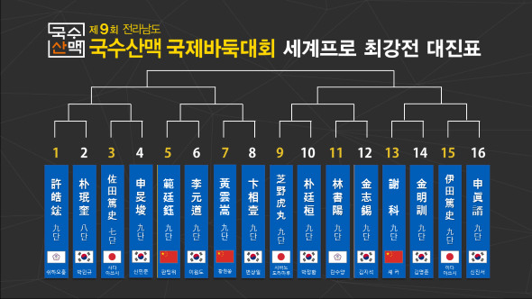 일본(3명) : 시바노 도라마루ㆍ이다 아쓰시 9단, 사다 아쓰시 7단(국가시드)대만(2명) : 쉬하오훙 9단(국가시드), 린수양 9단(선발전 통과)