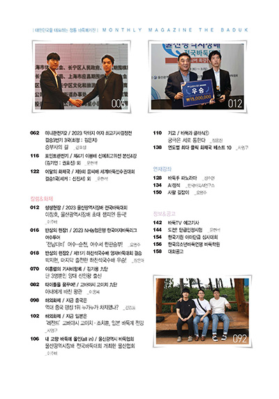 이 외에도 이홍렬의 [기사 비망록 : 김기용 9단]과 [기고 : 바둑과 클래식] 칼럼, 정수현 9단의 연재강좌 [바둑手 파노라마]를 비롯해 [AI정석] 등 유익한 강좌물이 함께 수록됐다.