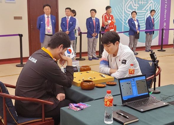 26일 중국 항저우 중국기원 분원 국제교류센터에서 열린 제19회 아시안게임 바둑 종목 남자개인전 예선 5∼6라운드에서 모두 승리한 신진서ㆍ박정환 9단은 각각 6승, 5승 1패로 결선 진출을 결정지었다.