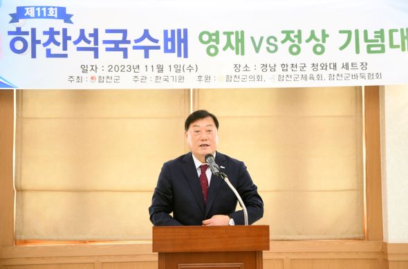 김윤철 합천군수는 “영재발굴의 산실로 자리 잡은 하찬석국수배가 열한 번째 대회를 맞이했다. 하찬석국수배 우승, 준우승자 출신인 신진서ㆍ신민준 9단이 항저우 아시안게임 남자단체전 금메달을 획득했다. 박지현 5단과 원제훈 3단도 본 대회를 시작으로 국내를 넘어 세계적인 선수로 거듭나길 기대한다”는 이야기를 전했다.
