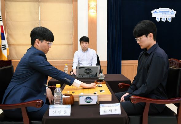 1일 합천영상테마파크 청와대 세트장에서 열린 제11기 하찬석국수배 영재vs정상 대결에서 신진서 9단과 신민준 9단이 각각 박지현 5단, 원제훈 3단에게 완승을 거두며 선배의 무서움을 보여줬다.