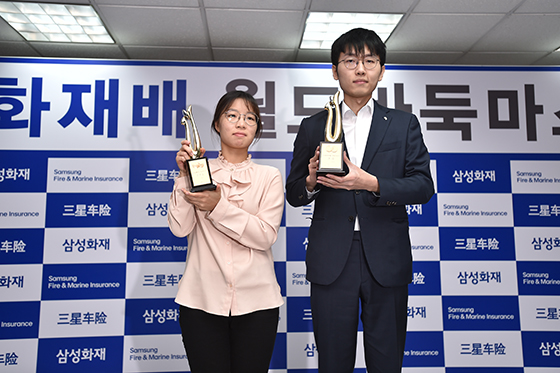 ▲2022 삼성화재배 월드바둑마스터스 챔피언 신진서 9단(오른쪽)과 준우승한 최정 9단.