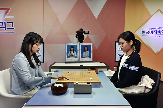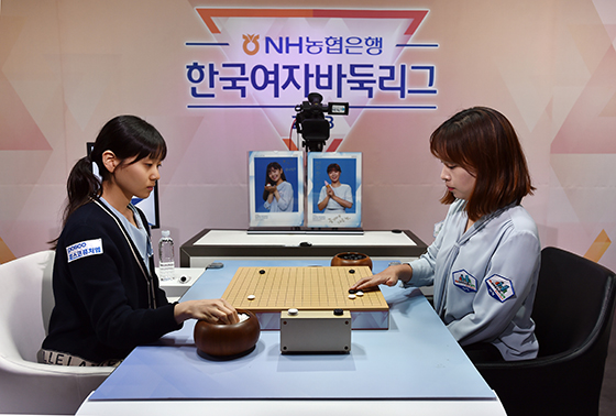 ▲김은선 6단(오른쪽)이 김경은 4단과 역대급 전투바둑을 선보인 끝에 승리, 팀 우승을 확정지었다.