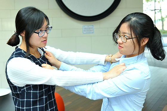 ▲삼성화재배 글로벌캠퍼스에서 만난 최정 9단(오른쪽)과 오유진 9단의 눈매가 매섭다.