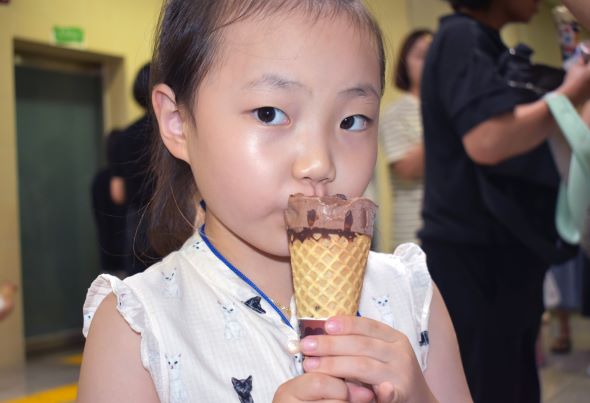 ▲해태아이스에서 제공한 부라보콘을 맛있게 먹고 있는 어린이 참가자.