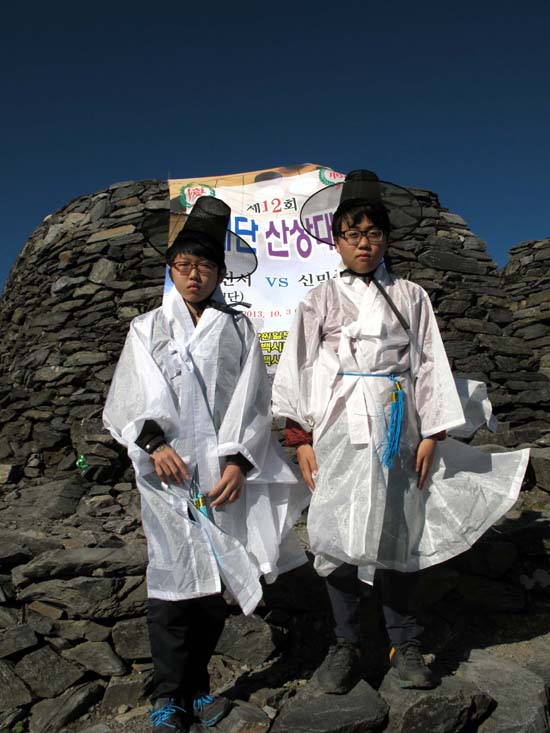 ▲ 천제단 앞에 나란히 선 신진서 초단(왼쪽)과 신민준 초단