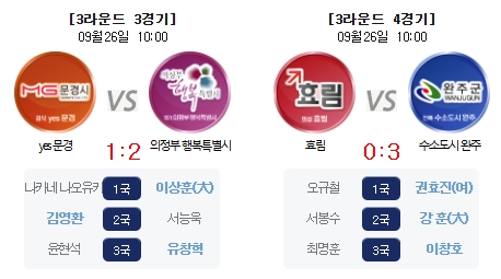 이창호 9단이 이끄는 수소도시완주가 효림을 3-0으로 완파한 것을 제외하곤 세 경기 모두 2-1 스코어의 접전. 그로 인해 승부를 좌우한 마지막 한 판의 결과를 놓고 이긴 팀과 진 팀 간 희비가 크게 교차했다.