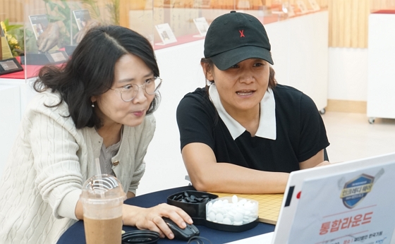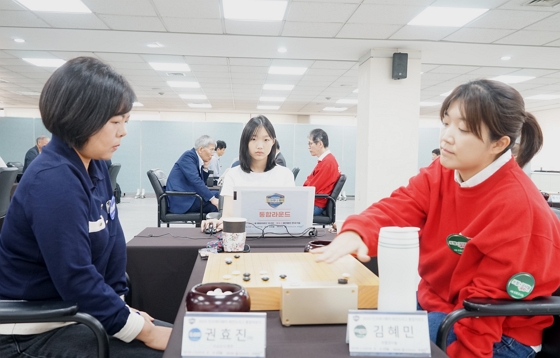 ▲ 여자리그 현역 간 자존심이 걸린 대결에서 김혜민 9단(오른쪽)이 권효진 8단에게 반집 역전승하며 쏘팔코사놀의 영패를 막았다.
