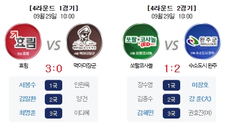 이밖에 효림은 맥아더장군을 3-0으로 완파하며 지난 경기 영패의 아픔을 씼어냈고, 개인 부문에서는 장수영 9단을 꺾은 이창호 9단만이 4연승 질주를 이어갔다.