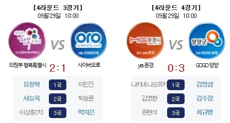 더없이 치열하다. 29일 통합 경기로 벌인 4라운드에서 3승의 선두 사이버오로가 2승1패의 의정부행복특별시에 일격을 맞고, 3연패 꼴찌 GOGO양양이 2승1패 에스문경의 덜미를 잡으면서 이 같은 구도가 형성됐다.