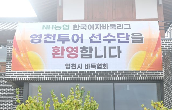 ▲ 대회장에는 선수단을 환영하는 현수막이 걸려있다.