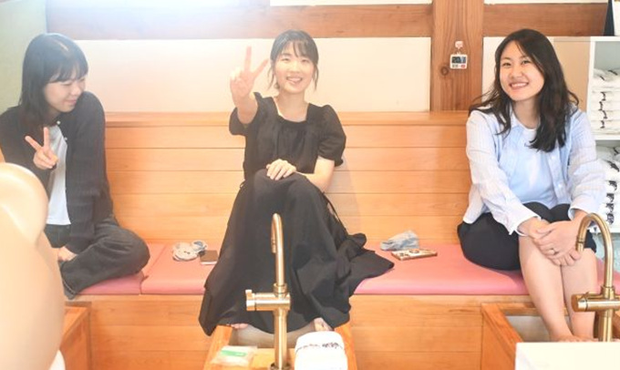 ▲ 경기 전 날 족욕 프로그램을 진행하고 있는 철원 팀 선수단 모습.