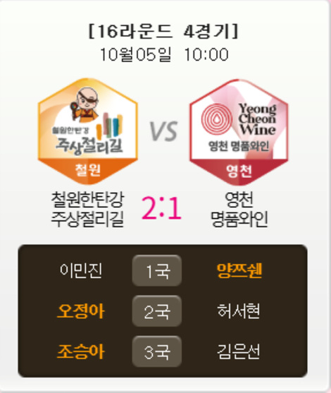 ▲ 16라운드 4경기 2국 속기 철원한탄강 주상절리길 조승아(승) vs 영천 명품와인 김은선