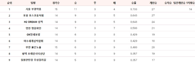 ▲ 16라운드 4경기 종료 후 팀 순위.
