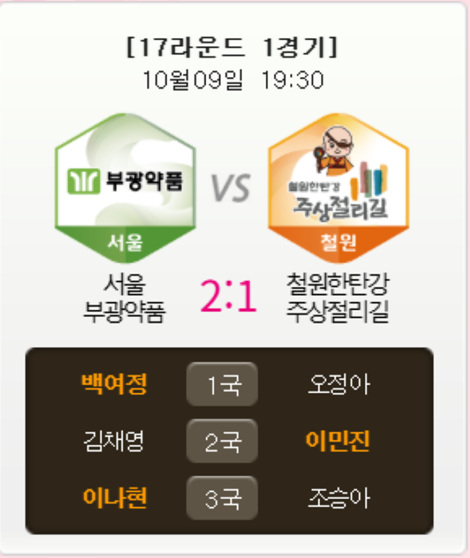 ▲ 17라운드 1경기 대국 종료 후 팀 순위.