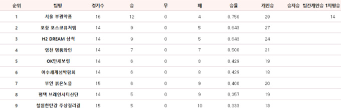 서울 부광약품, 철원한탄강 주상절리길 꺾고 리그 1위 확정! 챔피언 결정전 직행