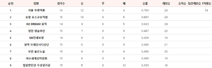 ▲ 17라운드 3경기 대국 종료 후 팀 순위.