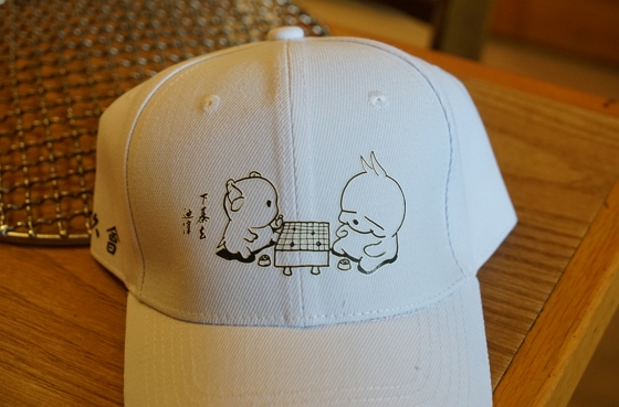 ▲ 루이 9단이 직접 그려 선물한 모자. 루이 9단은 글씨와 그림, 모두에 뛰어난 걸로 알려져 있다.