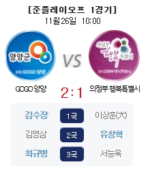 GOGO양양, 1차전서 의정부 2-1로 꺾고 승부 끝내