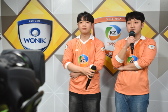 ▲ 챔피언 결정전 3차전 각오를 묻자 “올 시즌 정말 마지막 판인 만큼 모든 걸 쏟아부어서 최선을 다하겠다”는 최재영(왼쪽), “눈에 보이지 않는 분위기가 끈끈해서 똘똘 뭉친다면 또 한번의 기적이 일어날 것”이라고 결의를 다진 송규상