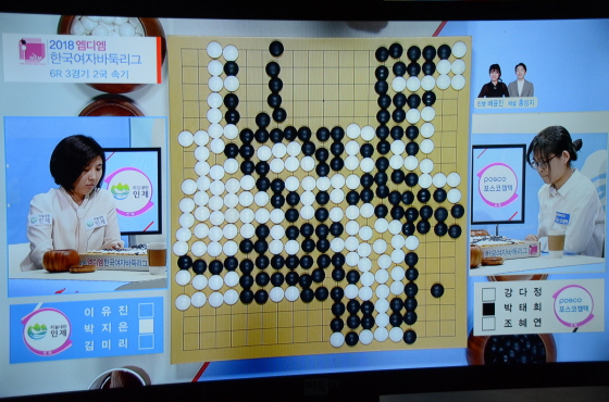 가장 먼저 끝난 대국은 항상 그렇듯이 속기판 2국. 포항 포스코켐텍의 박태희 2단과 인제 하늘내린의 박지은 9단이 주장 맞대결을 펼쳤다. 포석은 흑의 박태희 2단이 좋게 출발했지만 좌변 처리가 좋지 않아서 역전을 허용, 이후 백이 계속 앞서 나갔다. 그런데 끝내기에서 자그마한 잔실수가 계속 등장하더니 골인을 눈 앞에 두고 재역전, 흑이 반집을 남겼다.