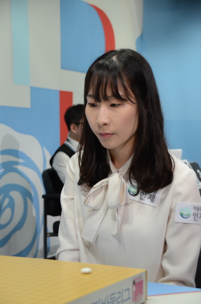 장고판 1국은 정반대의 흐름. 3주전 맞대결에서 포항 포스코켐텍의 강다정 초단이 좌변과 우중앙에서 동시에 벌어진 전투에서 성공하며 주도권을 확실히 잡았다. 더 유리해질 수도 있는 장면에서 모험을 피하고 안전하게 처리한 강다정 초단의 판단은 적어도 이때까지는 정확했다. 문제는 끝내기에서 거듭 양보를 한 까닭에 미세해졌고, 종국을 눈앞에 두고 또 다시 손해를 보며 역전을 허용하고 말았다. 다른 관점에서 보면 1승이 간절한 인제 하늘내린의 이유진 초단이 불리한 바둑이지만 인내심을 갖고 조금씩 따라 붙은 결과 마침내 반집 차이로 역전하고 첫승의 기쁨을 누렸다.