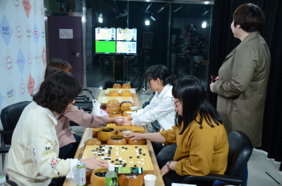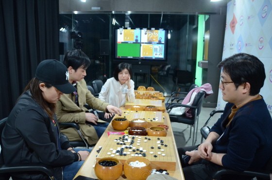 ▲ 이유진 초단은 첫 승리가 대역전 반집 승리였기 때문에 대국장에서는 상대 선수에 대한 배려로 표현할 수 없었다. 복기가 끝나고 인제 하늘내린 팀의 검토실에 들어와서야 웃음 띤 얼굴을 보였다. 앞으로가 중요한 인제 하늘내린 팀으로서는 그 동안 부진했던 이유진 초단이 살아나면 큰 힘이 될 것이다.