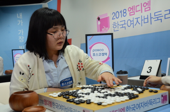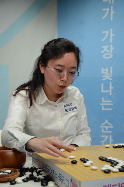 ▲ 포항 포스코켐텍의 강다정 초단은 다 잡았던 승리를 놓치며 1승 2패가 됐다. 용병 왕천싱 선수가 출전하면 자리를 내주는 경우가 많기 때문에 상대적으로 출전 기회가 적은 편이다.