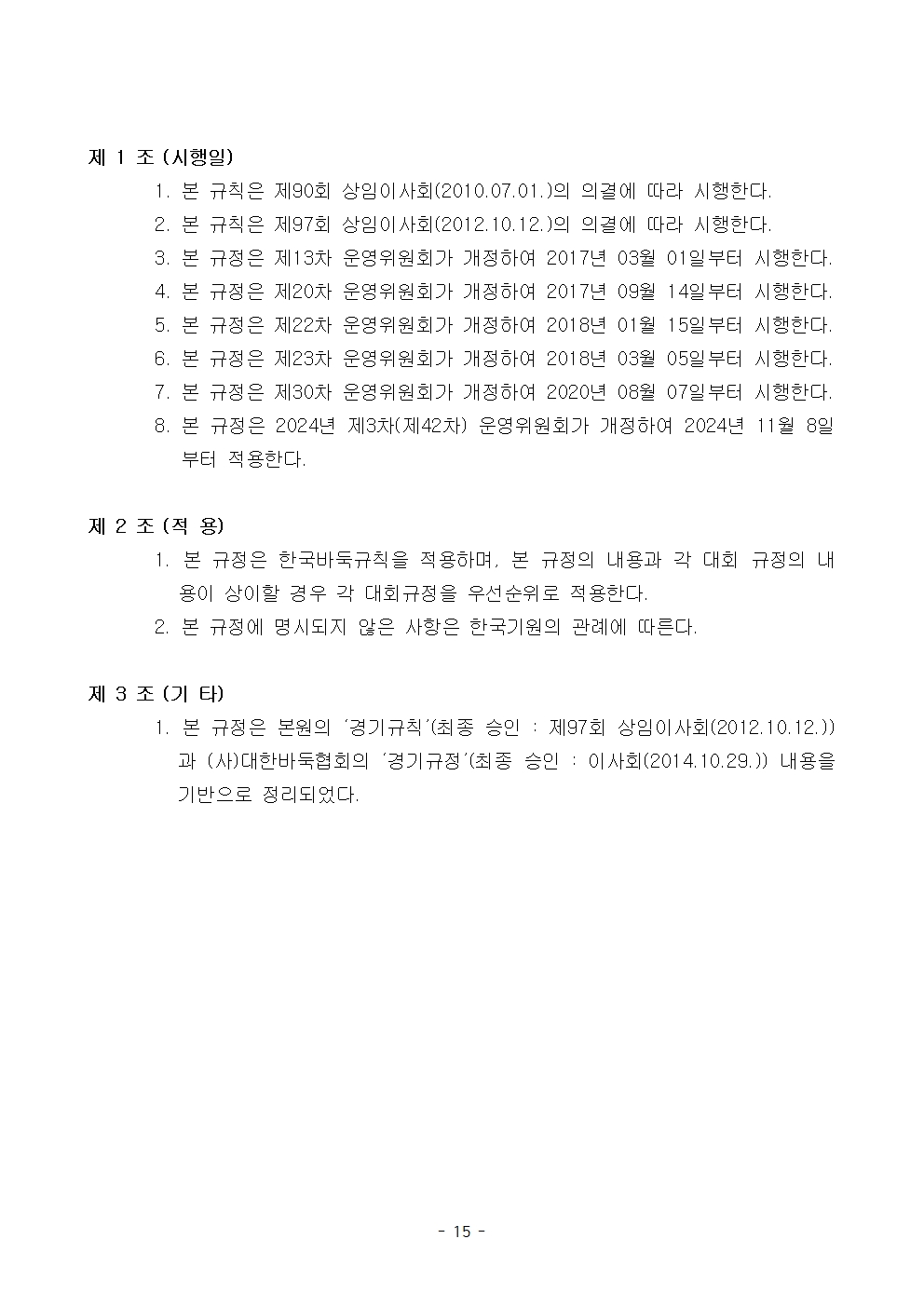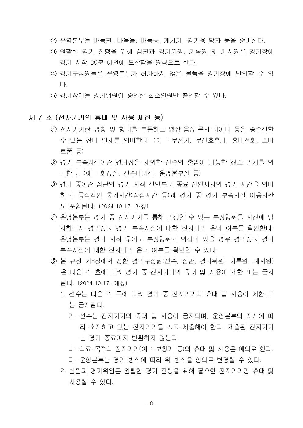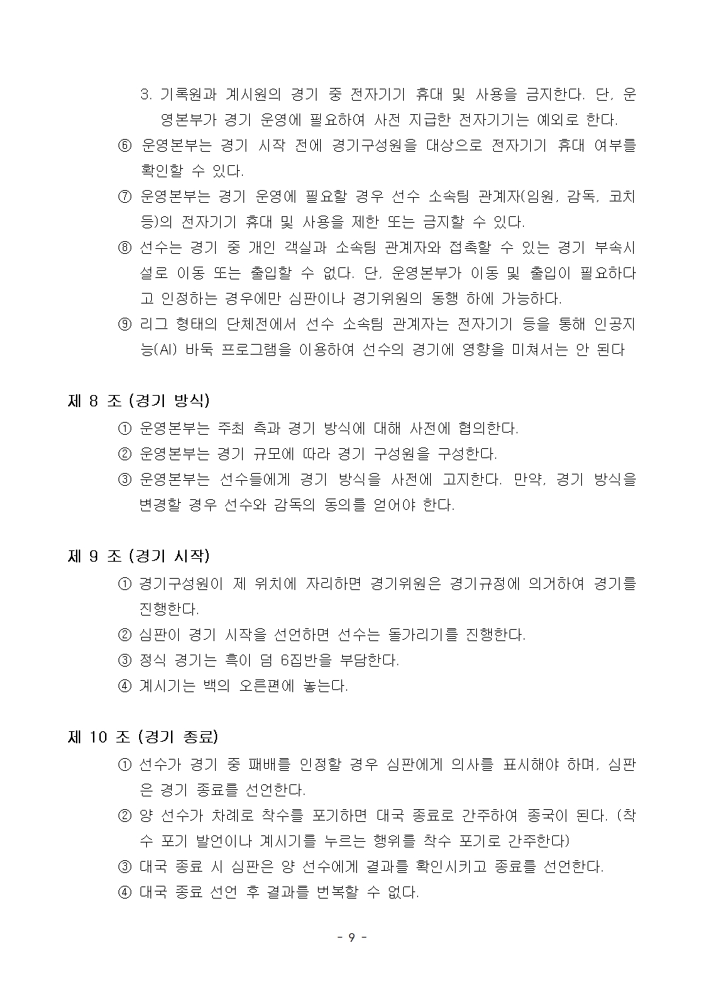 바둑 경기규정(2024년 11월 8일-2025년 6월 30일 까지)