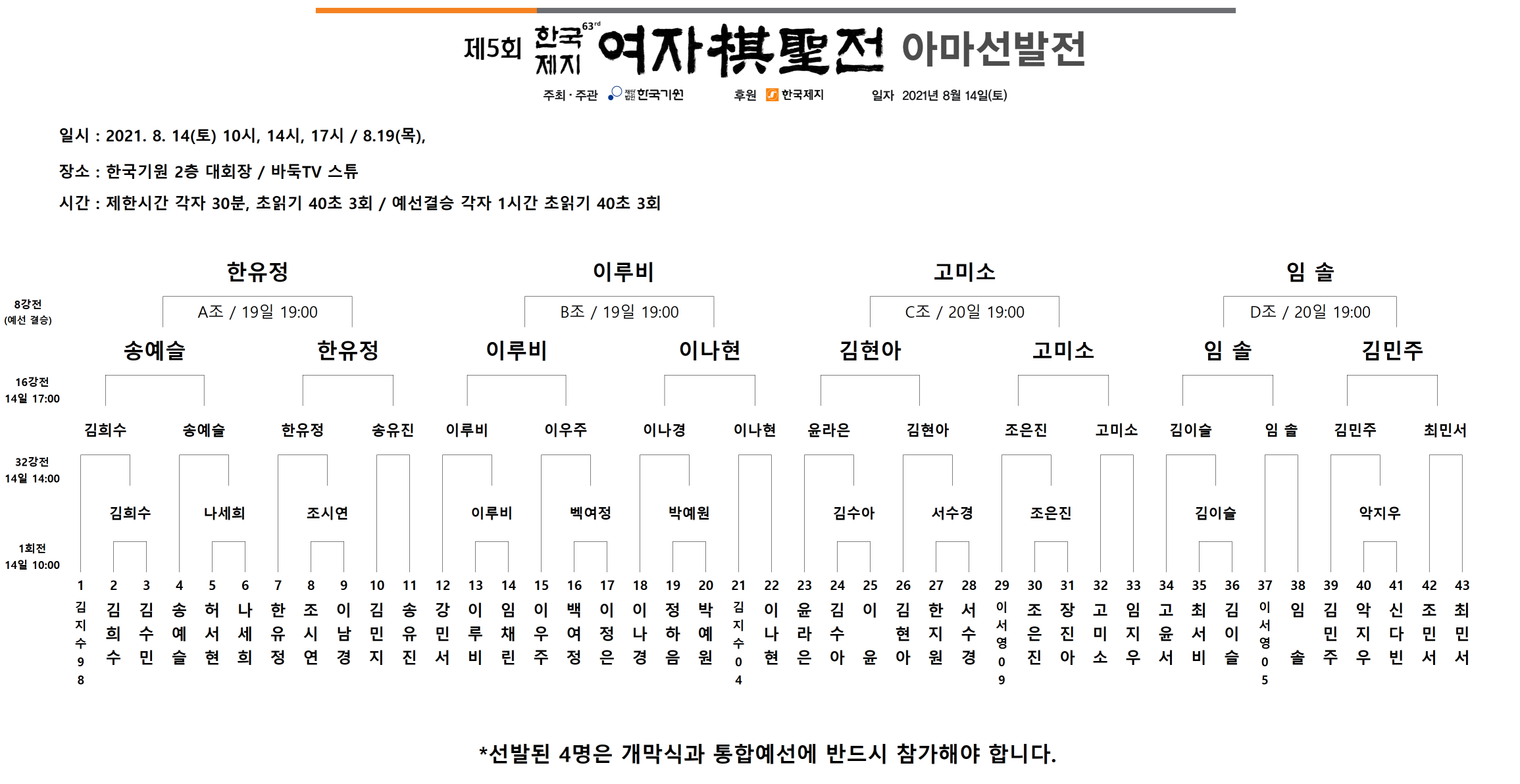 제5회 한국제지 여자棋聖전 아마선발전 대진표