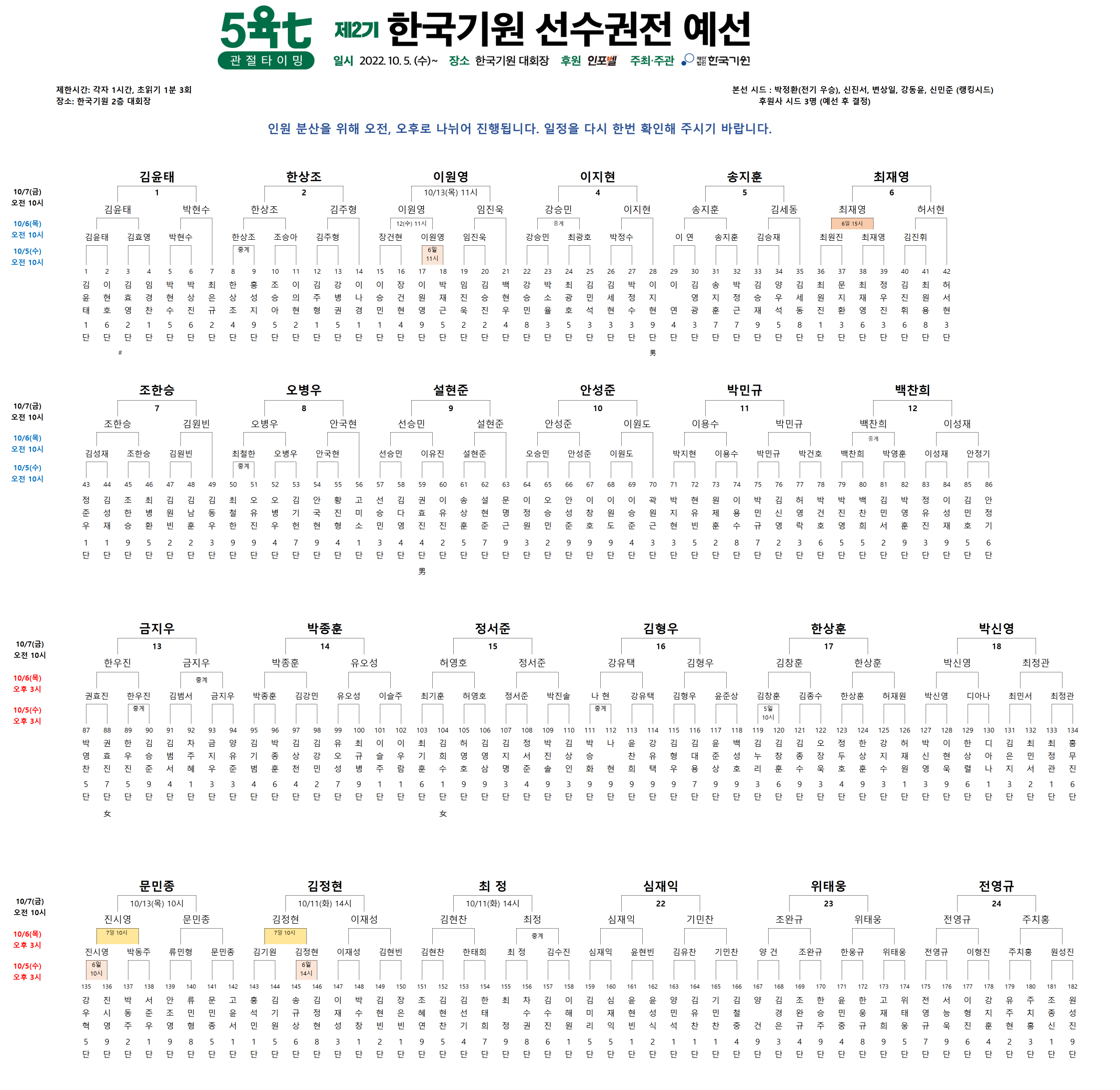 제2기 5육七 관절타이밍 한국기원 선수권전 예선 대진표