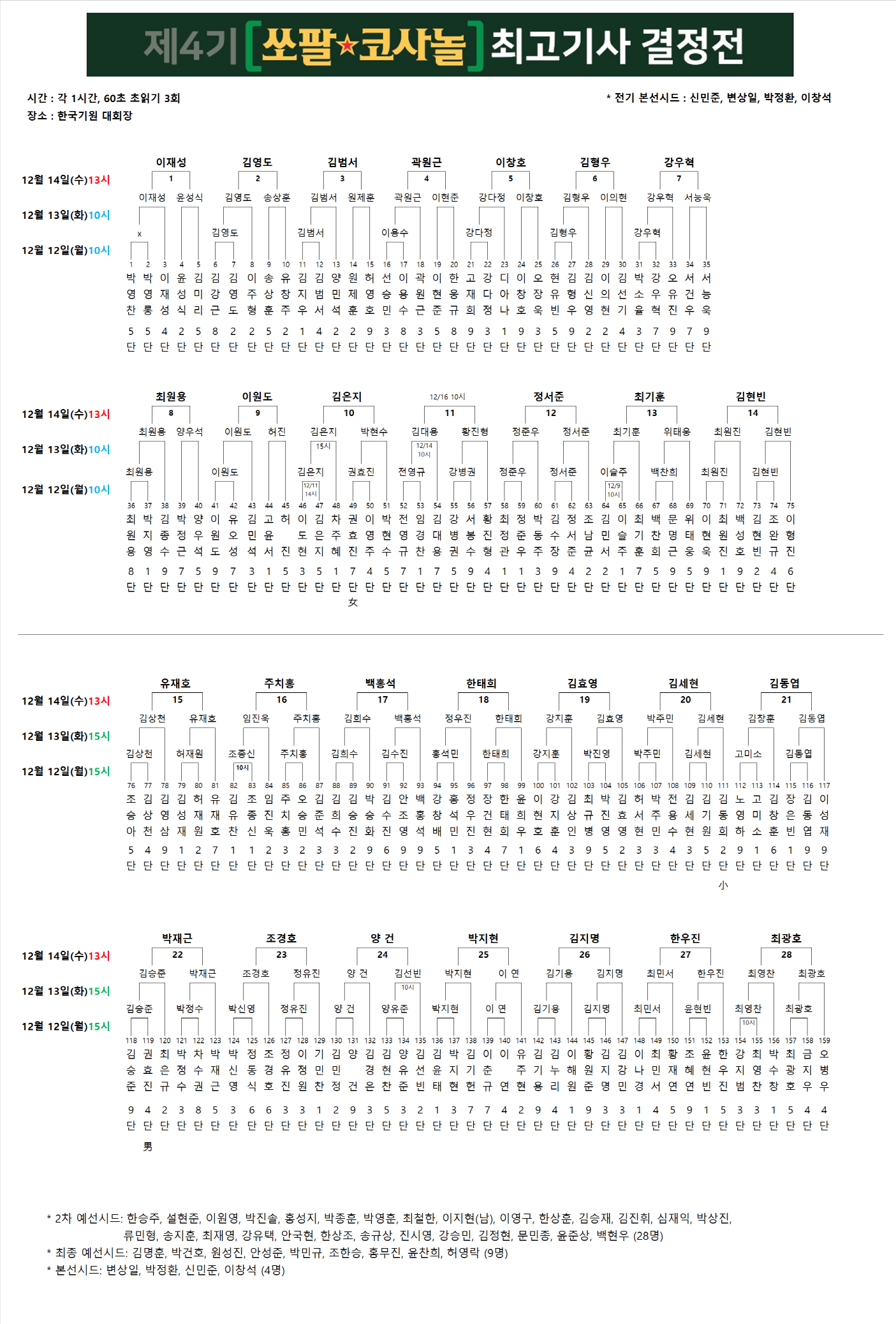 제4기 쏘팔코사놀 최고기사 결정전 1차예선 대진표