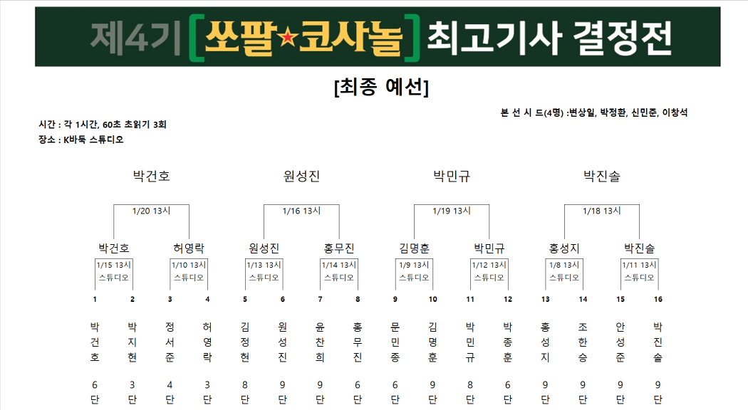 제4기 쏘팔코사놀 최고기사 결정전 최종예선 대진표