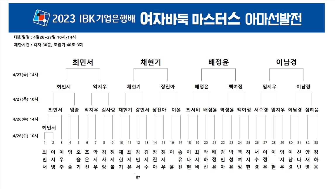 2023 IBK 기업은행배 여자바둑마스터스 아마선발전 대진표