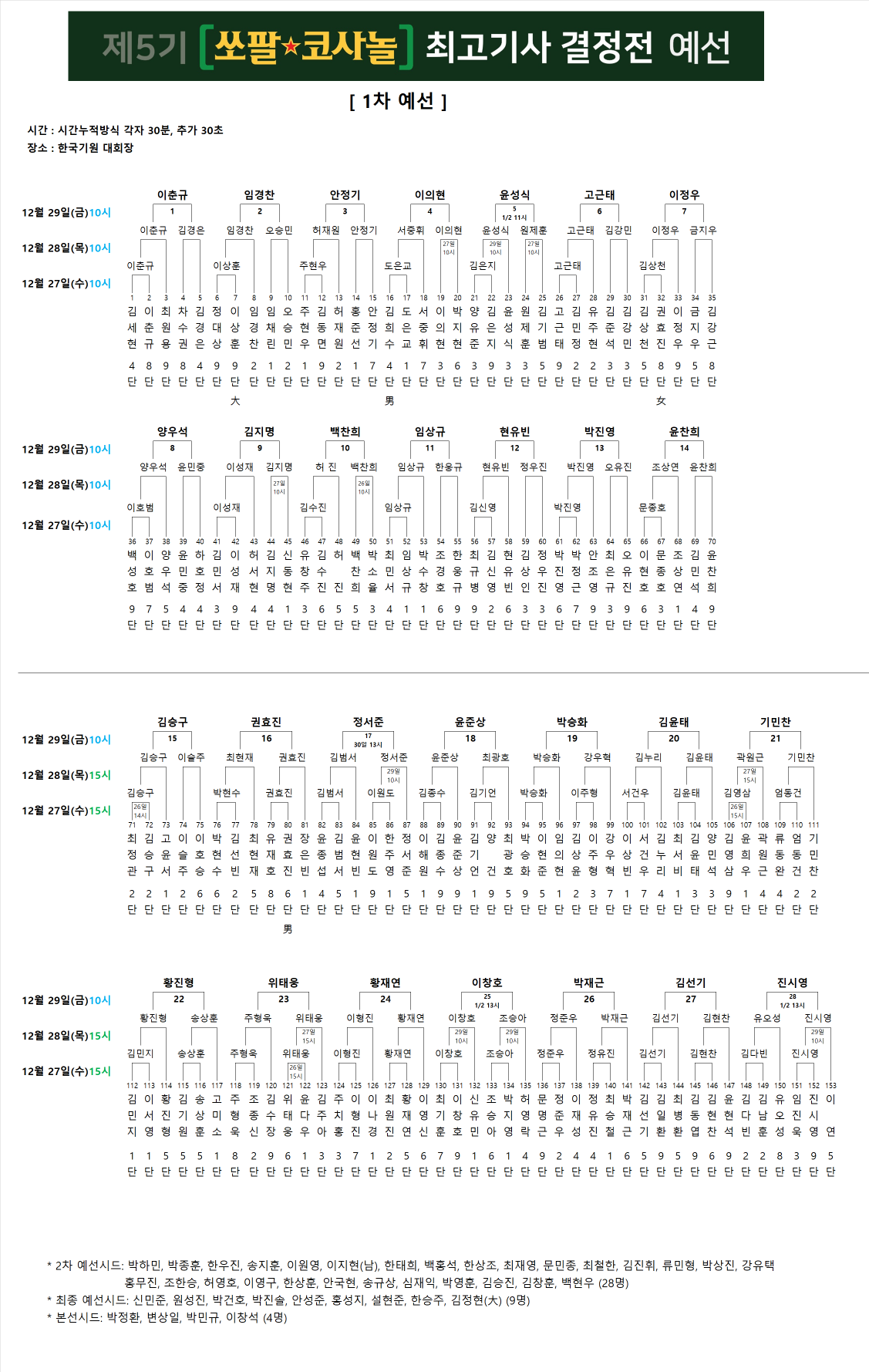 제5기 쏘팔코사놀 최고기사 결정전 1차예선 대진표(최종)