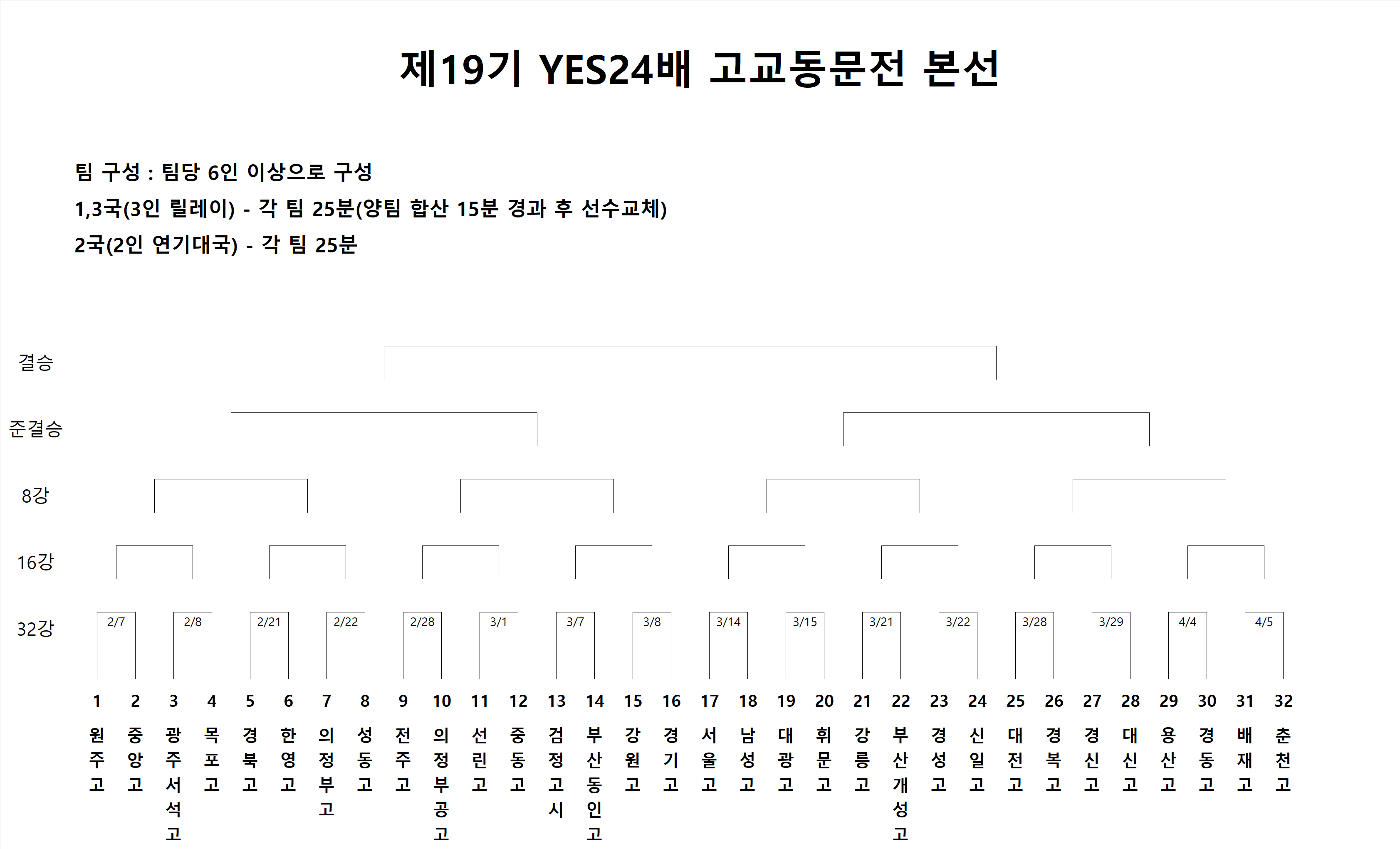 제19기 YES24배 고교동문전 본선대진표.xlsx