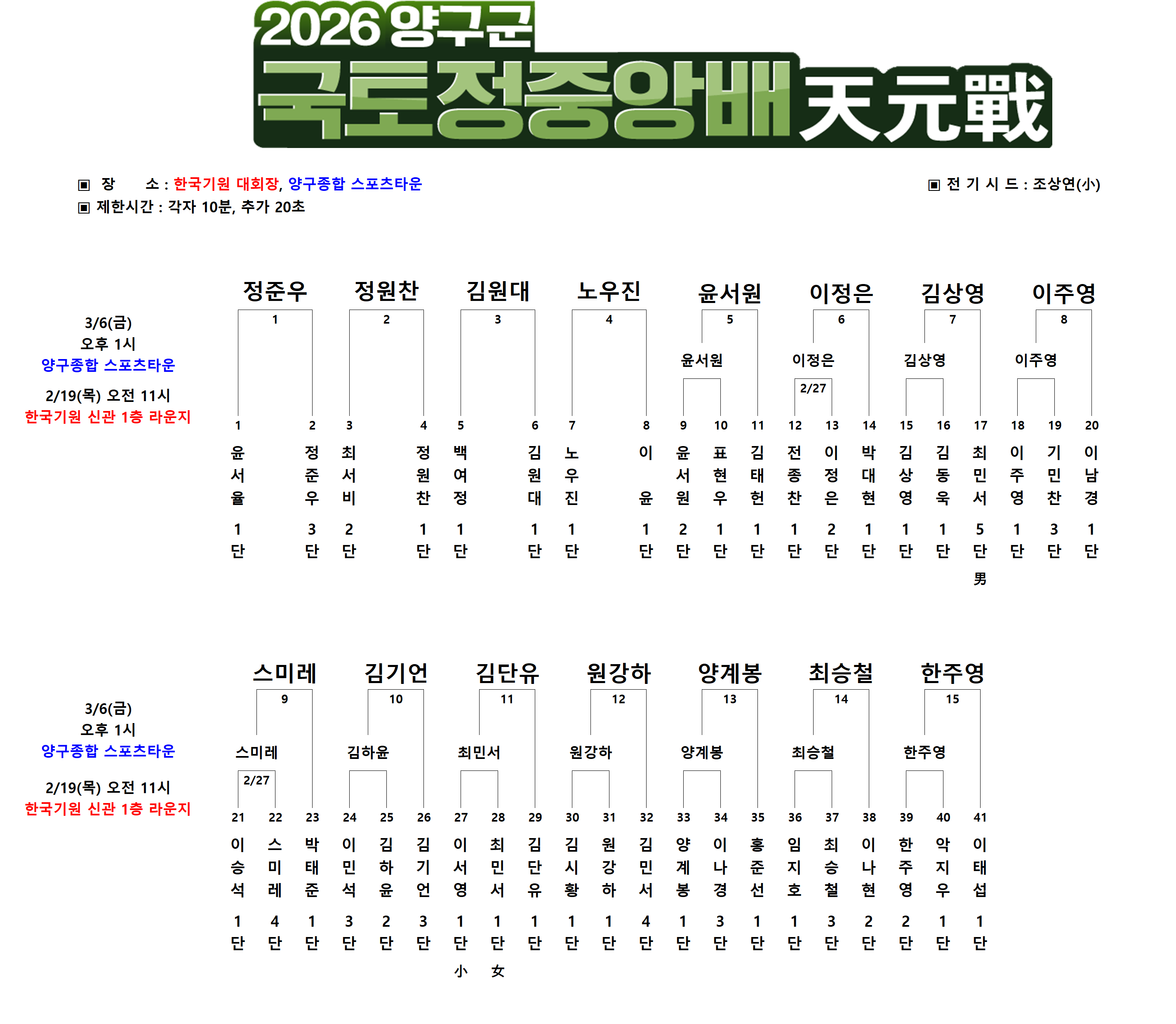 2026 양구군 국토정중앙배 天元戰 예선 대진표(최종)