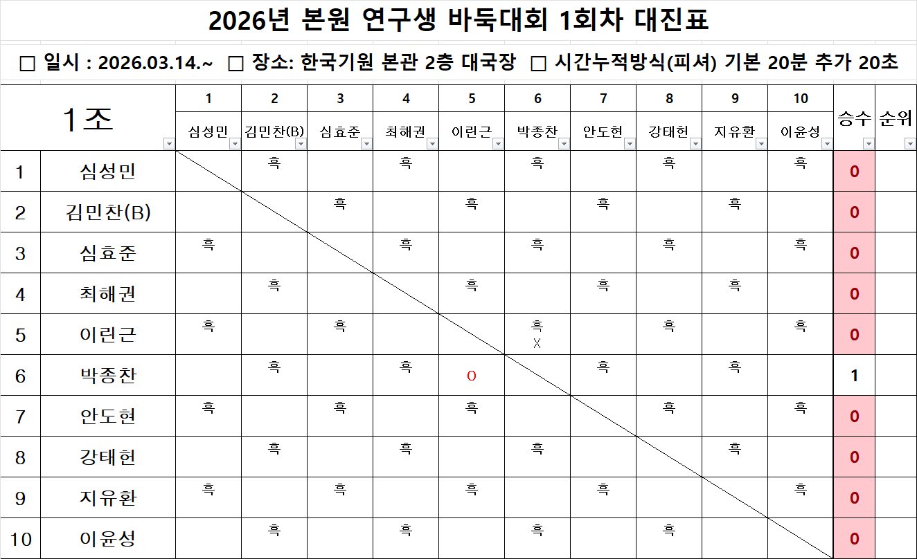 2026년 본원 연구생 바둑대회 1회차 결과(0314)